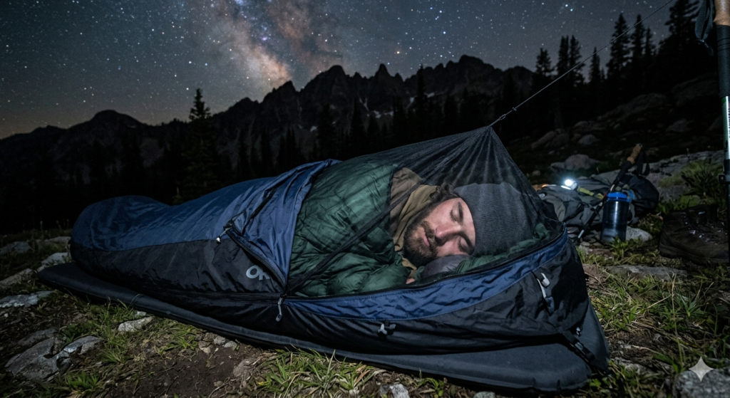 - Bivy Sack Camping (The Hybrid Approach): If the idea of insects crawling on you is too much, many hikers use an ultralight bivy sack. This is a highly breathable, water-resistant sleeve that goes over your sleeping bag. It features a mesh face panel to keep mosquitoes out while still providing the open-air experience.